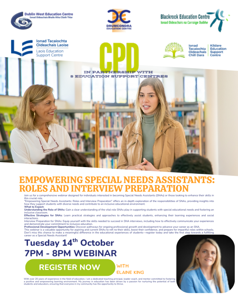 Join us for a comprehensive webinar designed for individuals interested in becoming Special Needs Assistants (SNAs) or those looking to enhance their skills in this crucial role.