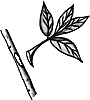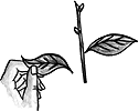 Heel cuttings: A hardwood cutting of a side shoot. The shoot is pulled off the main stem with a piece of bark attached. The heel should be trimmed with asharp knife before the cutting is inserted in the trench.