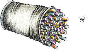 Pack the lengths tightly into the tin. Drinking straws can be used instead of lengths of bamboo.